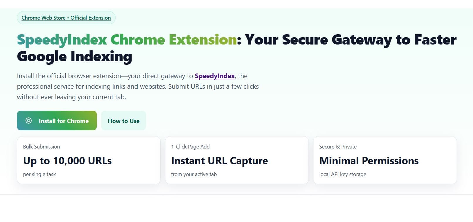 The SpeedyIndex Chrome Extension was built to solve this exact problem. It’s not just another tool; it's your secure, direct gateway to our powerful indexing service, designed to bridge the gap between content creation and Google's discovery. With it, you can transform your workflow from passive waiting to proactive indexing in just a few clicks, without ever leaving your current tab.